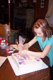 9-year old Lilly decorating her own birthday cake!